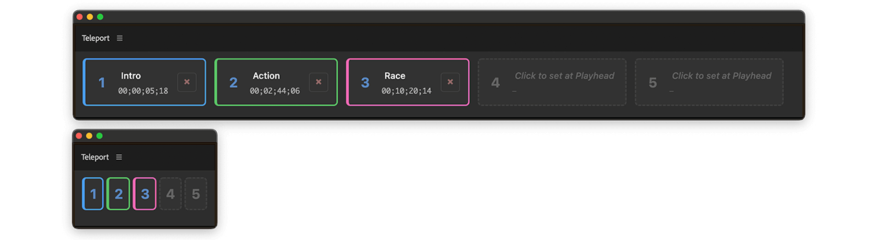 Teleport lets you drop a digital anchor anywhere in your timeline, allowing you to instantly jump back to that exact frame. No more searching for colored markers or memorizing timecodes!